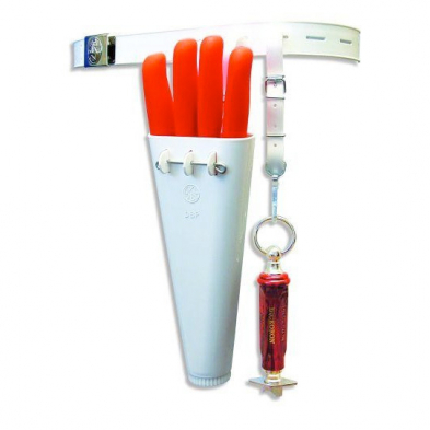 Knife scabbard for 4 knives including belt and sharpening steel strap. Knives and steel are not included, sold separately.