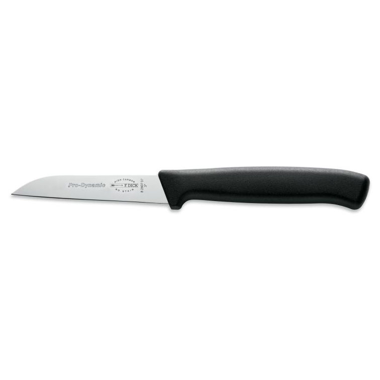 With ProDynamic knives from Friedr. Dick, working in the kitchen is even more fun! You can choose between a wide range of different knife shapes to suit your cutting tasks. The full plastic handle is optimally adapted to your hand. The softer plastic handle gives you a comfortable feeling when cutting and the handle feels light and secure in your hand. The thumb rest optimises the grip when reaching over to weigh and chop. Your knife fits comfortably in your hand so you can work efficiently and accurately.