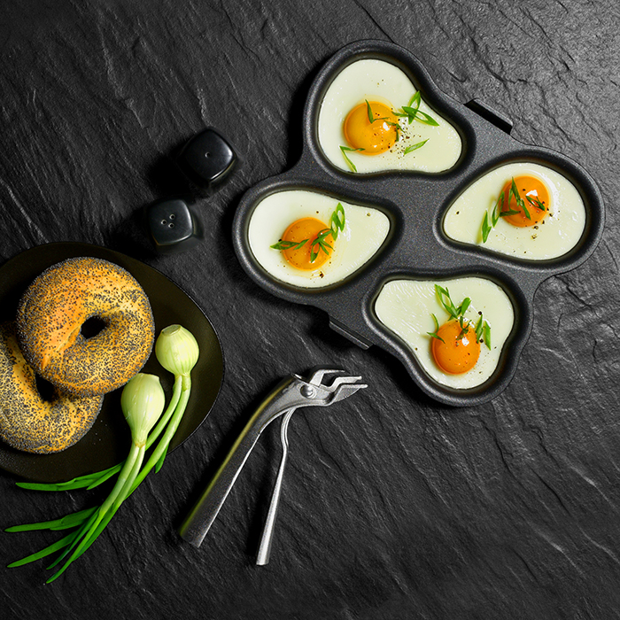 The non-stick and stackable 4-egg speed oven tray from AMT allows you to achieve the perfect and consistent shape for your cooked eggs, everytime!