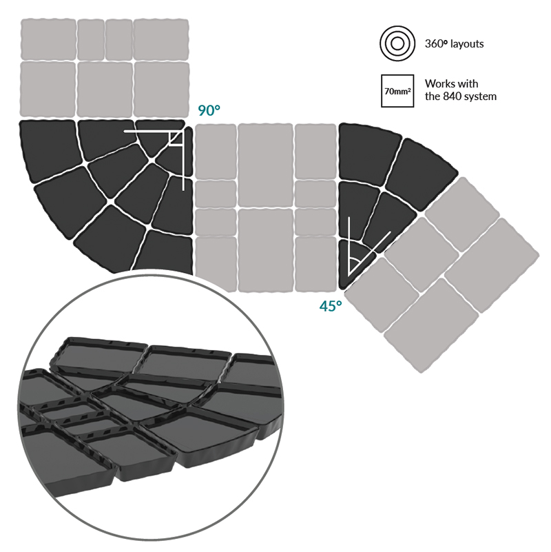 Dalebrook's innovative Aalto 360° Trays allow you to create 360° layouts that are also designed to work within an 840mm footprint.