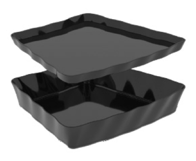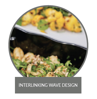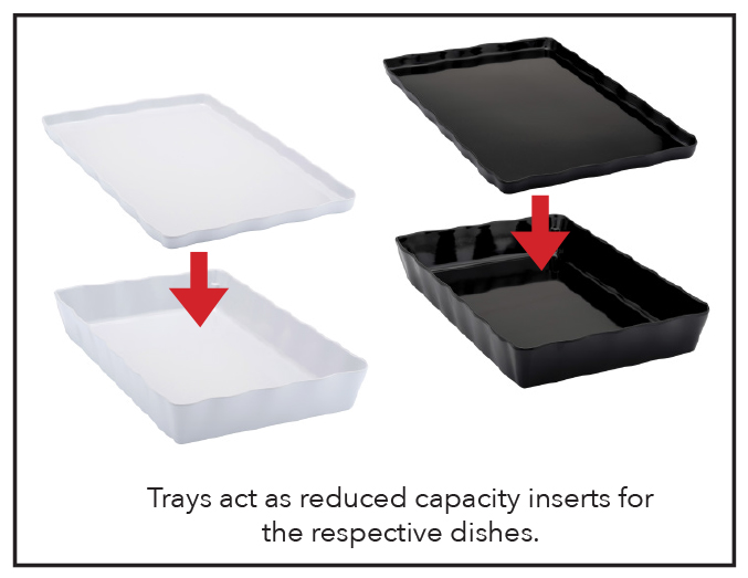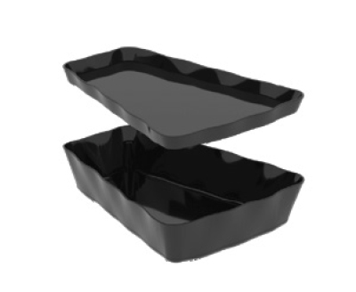 The Aalto collection from Dalebrook is designed to work within an 840mm footprint, and create multiple combinations across the five dishes. Trays act as reduced capacity inserts for the respective dishes. Wavy finish runs throughout walls of dishes and trays.