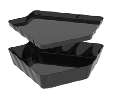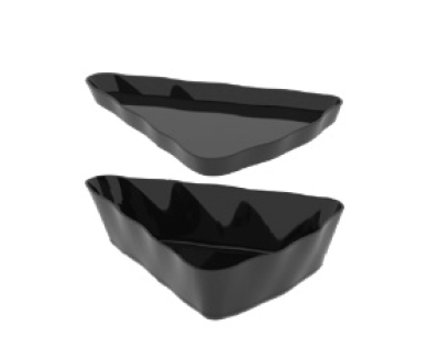 The Aalto corner trays from Dalebrook allow you to achieve unique 45-degree angles in your counter display configurations. Designed to work within an 840mm footprint, the trays again act as reduced capacity inserts for the respective corner option dishes. The same wavy finish runs throughout the walls of the corner option dishes and trays.