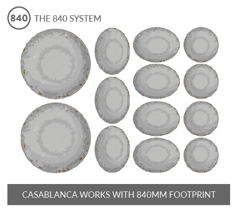 Influenced by Moroccan culture and cuisine, Casablanca is the perfect canvas backdrop for vibrant food. The distressed, crackled texture and vibrant colours give Casablanca the look and feel of traditional ceramics paired with the durability and functionality of melamine.