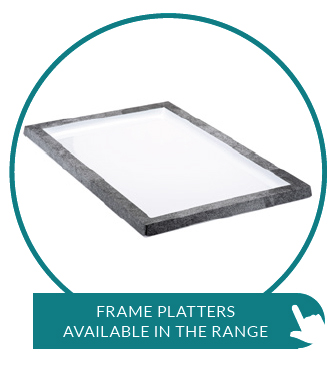Dalebrook’s incredible frame platters are designed to draw the customer’s eye to a focal point by uniquely framing, and thus highlighting your featured products. Developed for fresh food areas, the elevated design profile prevents liquid from spilling over. Silicone feet are provided to prevent skating in the counter.