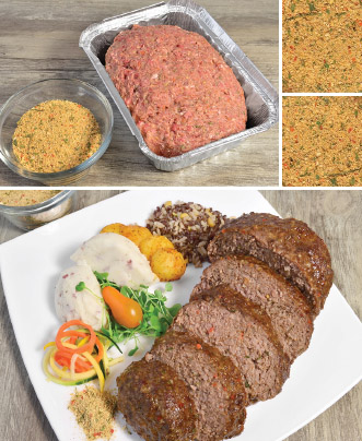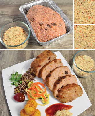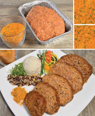 This superb meatloaf is flavoured with a classic Moroccan spice blend of sweet paprika, cumin, cinnamon, coriander, cayenne, ginger, mint, cilantro garlic and onion. Includes sprinkles of dehydrated celery and carrots.