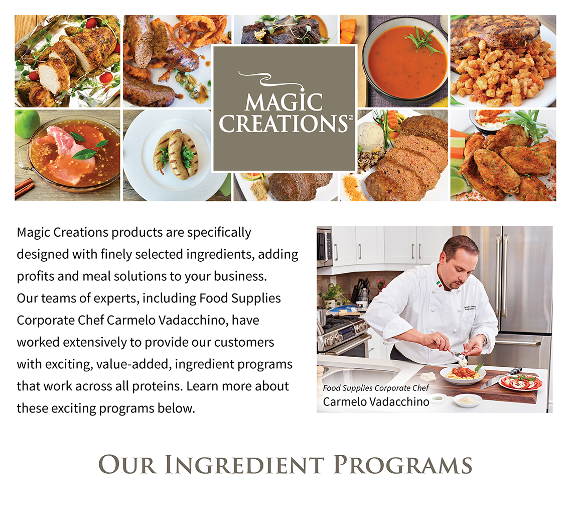 Our Magic Creations Artisanal Stuffing Program was specifically designed with finely selected ingredients to offer an artistic, modern spin on traditional stuffings found around the world. We are pleased to present (4) unique & versatile flavour profiles that will provide creative opportunities for your stuffed meat & veggie meal solutions.