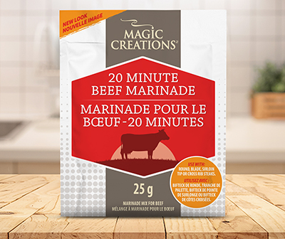 A good steak is always a favourite, but don’t be afraid to take some “shortcuts”! The marinade doesn’t necessarily have to be made from scratch and used for hours. Magic Creations 20 Minute Beef Marinade makes it easy to throw together a delicious steak that melts in your mouth. It’s ideal for round, blade, sirloin tip and cross rib steaks.