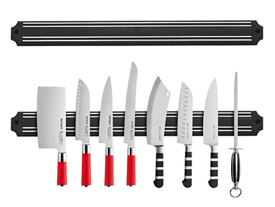 The bar itself is made using strong magnets with an elegant, satin finish - making this knife bar great for accenting any kitchen décor. The black polypropylene plastic that makes up the frame is the strongest grade of plastic available. This ensures stable and long-lasting support for your high-priced and beloved knives. The F.Dick magnetic knife board allows you to safely organize any of your metal kitchen utensils for easy access and visibility.