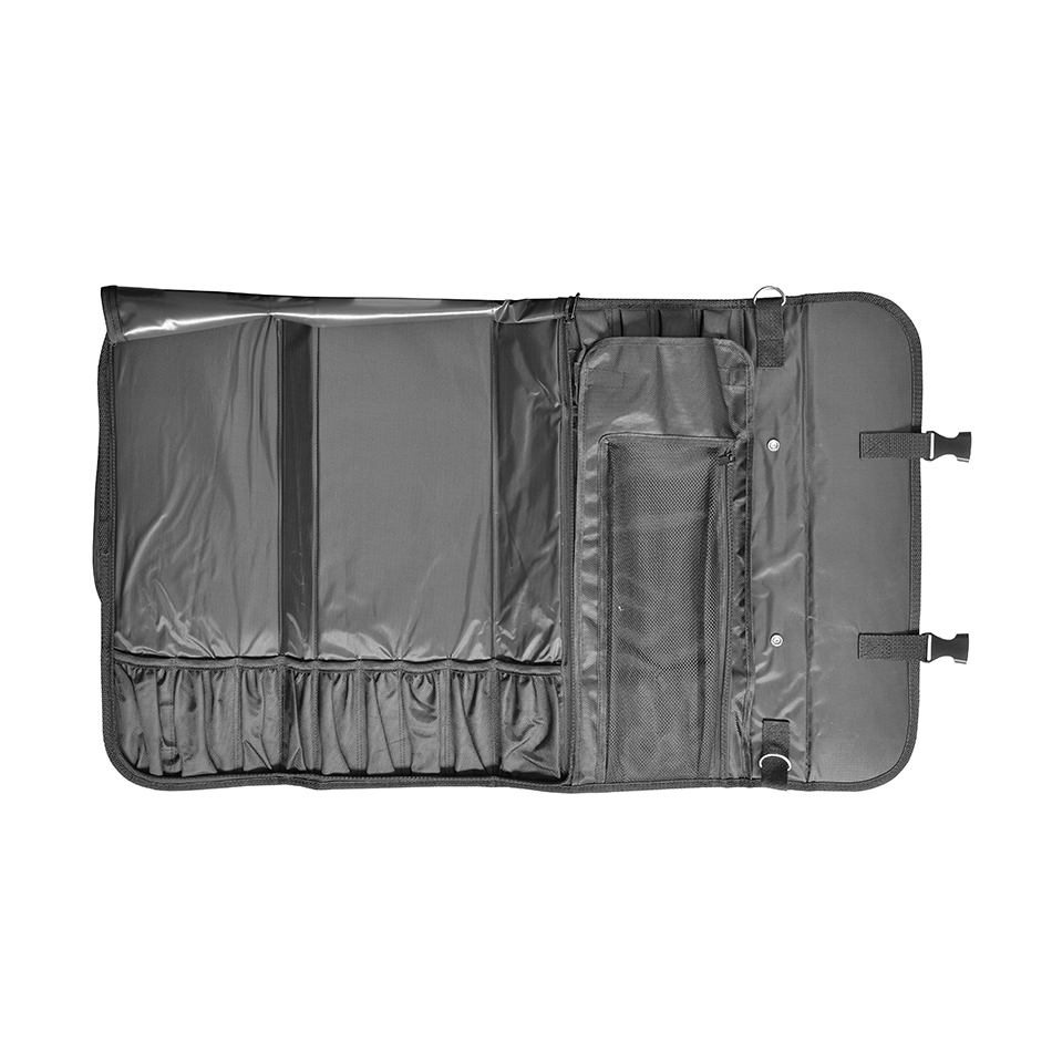 Our roll bag features durable lining, multiple compartments, zipper pockets, a sturdy carrying handle and detachable shoulder strap.