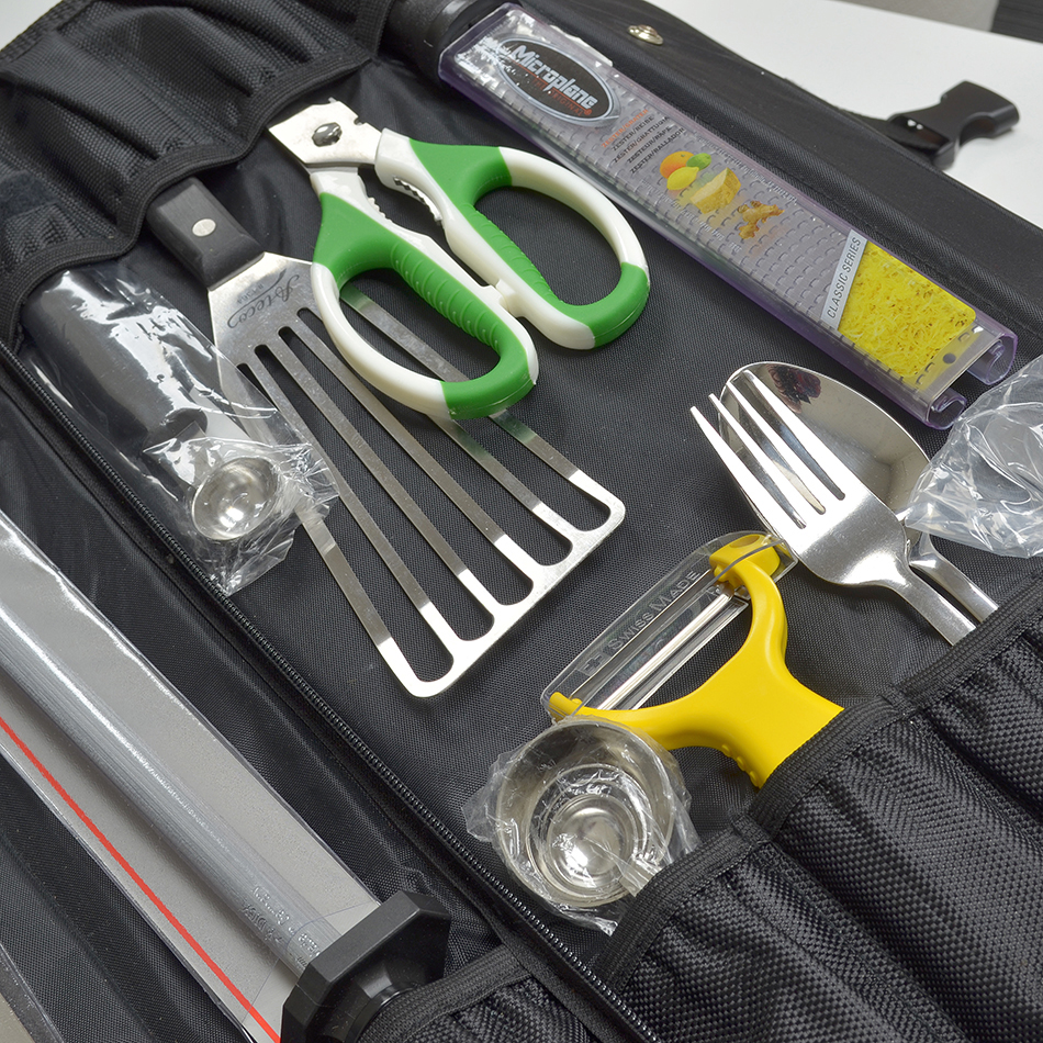 Our Culinary kit comes complete with a quality roll bag and 35 essential culinary tools.