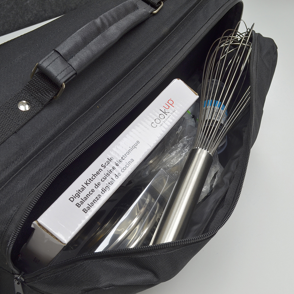Assembled inside of the roll bag are the following 29 baking components: