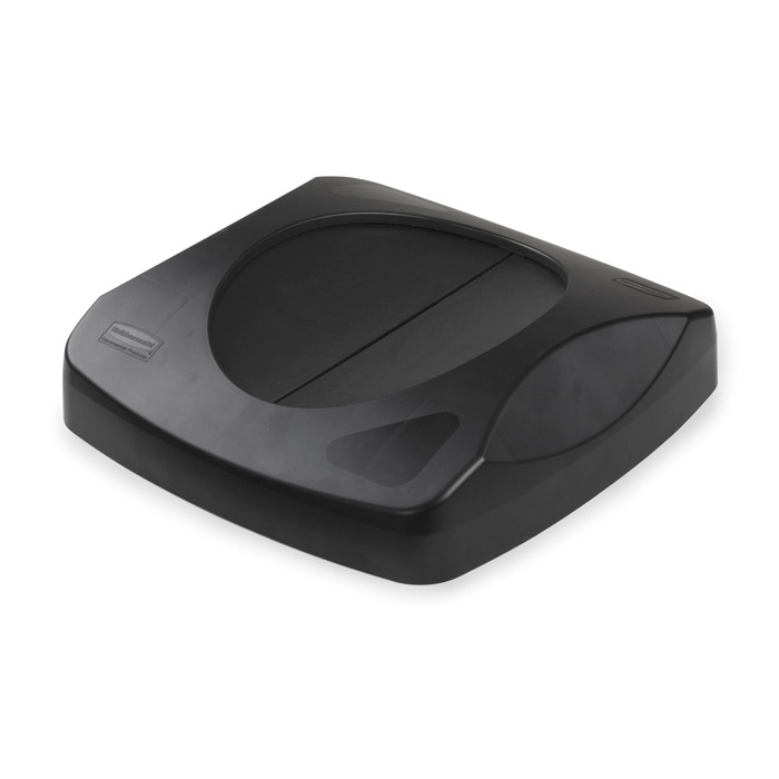 > Swing lid design provides easy access and quickly returns to hide refuse from view.