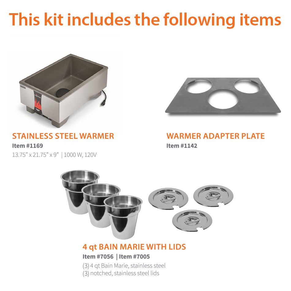 This complete warmer kit includes the following items: