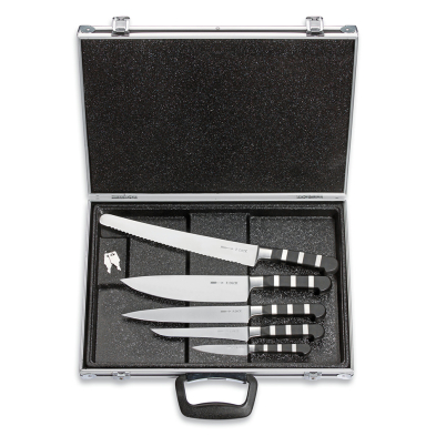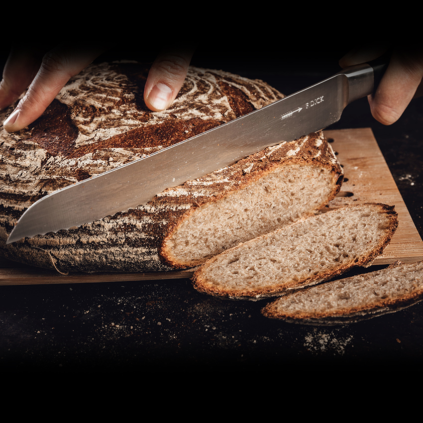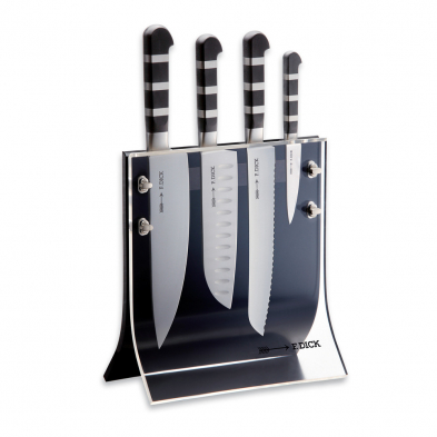 Friedr. Dick already had an eye for beautiful design in 1905 when it developed a knife series with solid collars. These replaced the round rivets that had been known and in use until then. Unfortunately, this early 20th century design has fallen into oblivion, but it experienced a revival in 2010. All knives in the 1905 series have a distinctive handle. Steel rings alternate with the high-quality and resistant plastic without gaps, making the handle a haptic as well as a visual experience. The F. DICK embossing on the knife blade completes the classically modern design of the series.