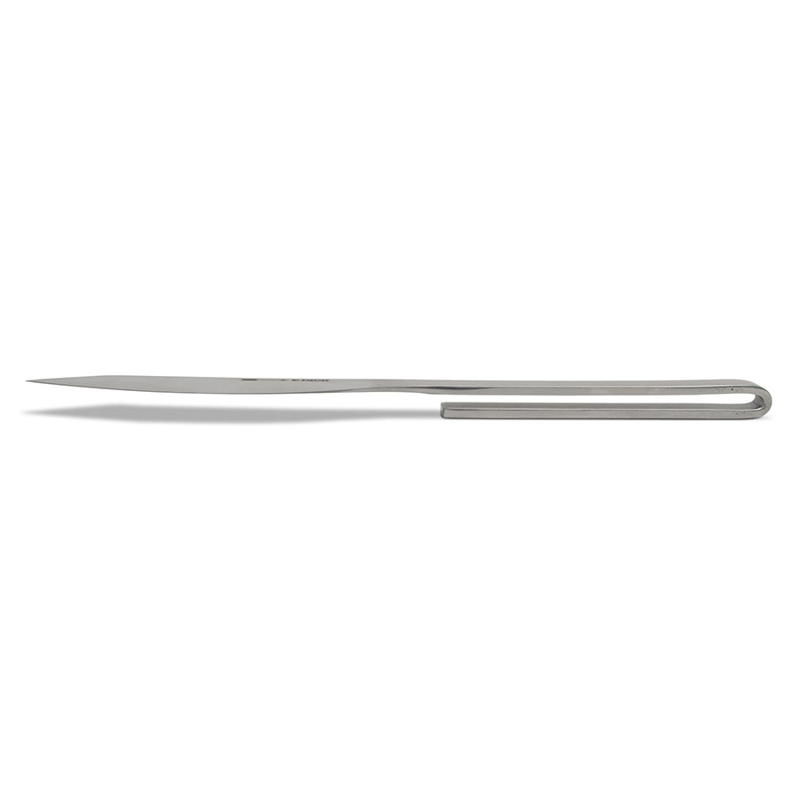 The interplay of the blade material, cutting edge shape and handle design of the PURE METAL AJAX knife achieves an exceptional cutting experience with intuitive handling. The style of the blade took its inspiration from our successful AJAX chef’s knife. The exceptionally wide blade surface, and the curved and super sharp cutting edge of the PURE METAL AJAX guarantee a clean cut without sawing and tearing. The PURE METAL AJAX has also been designed with every type of food in mind, making it a true all-rounder and an eye-catching tableware addition. The steak and table knife use the same tried-and-tested steel quality as our premium chef's knives.