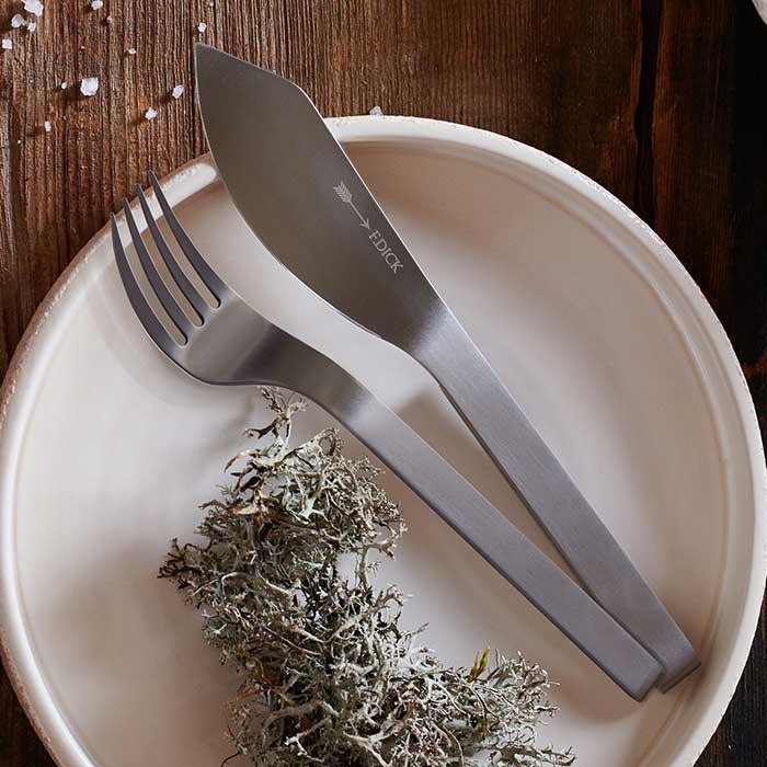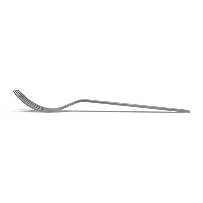 The Pure Metal steak and dinner fork impresses with 4 longer, sturdy tines. These are perfect for holding and picking up thick pieces of meat. The weight is evenly distributed so that the fork is balanced and comfortable in the hand. The slightly wider shape of the fork is ideal for cutting potatoes and vegetables. The design of the fork follows the clear line and styling of the AJAX Pure Metal knife.