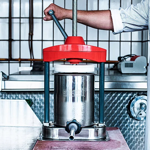 This proven and successful F. DICK tabletop sausage filler has now been completely revamped. The new generation is based on the proven, robust and stable basic construction of the previous version. What's new is that the filler is even more hygienic due to the closed construction and the additional corrosion protection on the gear wheels and side bars. Filling and cleaning remain very simple thanks to the removable cylinder. Thanks to the polished interior of the cylinder, the piston can be moved down smoothly without leaving any residues. The plastic piston is equipped with a patented vent valve. Of course, the new light-duty sausage filler is also transportable and can be easily fixed to a table as usual. A set of 4 different plastic filling tubes is already included in the basic equipment of the sausage filler. A stainless steel filling tube set is also available in the range of our accessories.