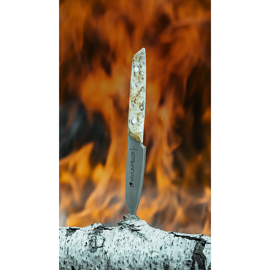 The unique power of nature combined in a new knife series – VIVUM. These unique paring knives combine a natural appear-ance with extreme sharpness: an elegant and specially shaped birch wood handle comes together with the highest quality knife steel and a modern blade design. A design that has now been honoured at one of the world's most prestigious design competitions - the Red Dot Award 2024.