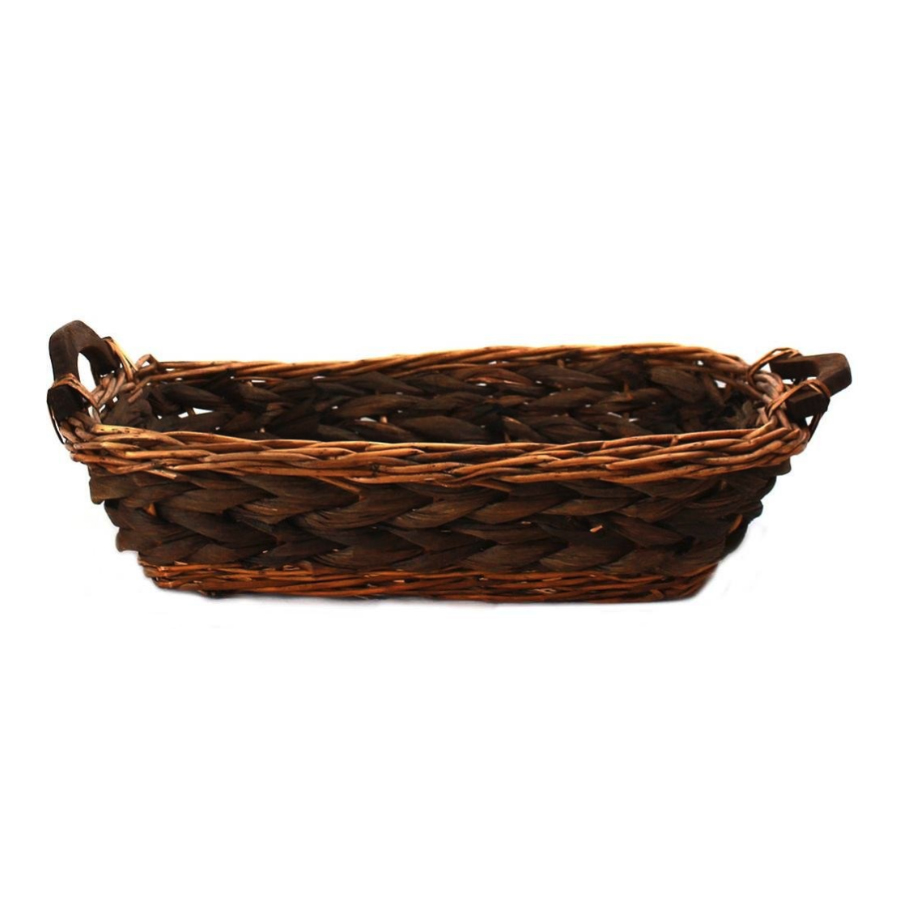 Two-Tone Rectangular Wicker Basket w/Handles- 20" x 16" x 5"