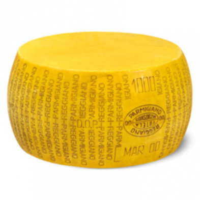 Parmesan Reggiano Solid Cheese Wheel (Yellow). This is an artificial cheese wheel used for display purposes.